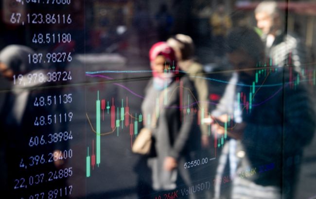 Графік зміни курсу на тлі людей (фото Getty Images)