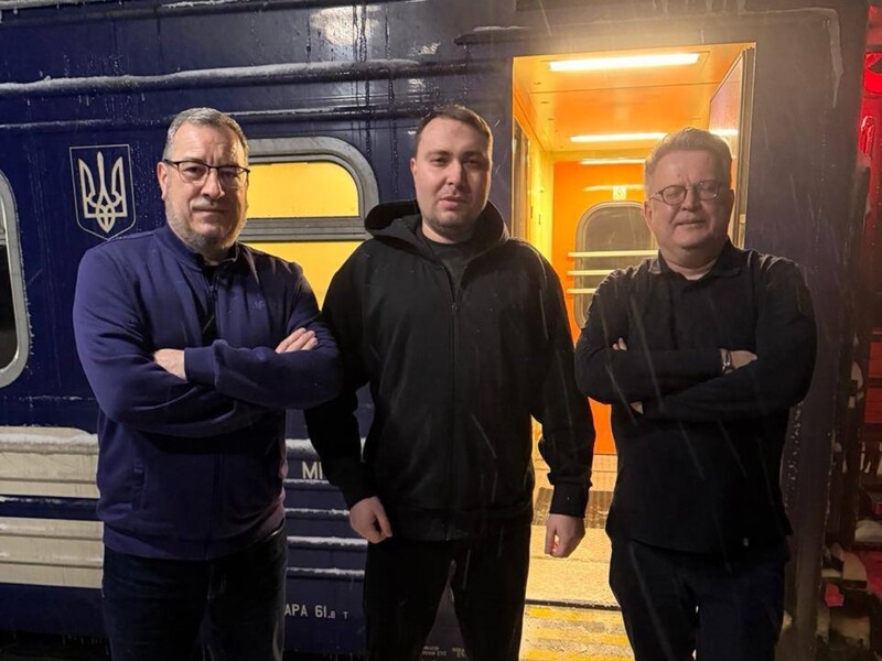 На фото поруч із Будановим – заступник керівника Офісу президента Сергій Кислиця і заступник начальника Головного управління розвідки Міноборони України Вадим Скібіцький. Вони стоять біля поїзда.