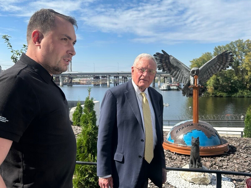 “Як завжди, чудовий візит і обговорення з генералом [начальником Головного управління розвідки Міністерства оборони України Кирилом] Будановим біля статуї кота”, – додав він.
