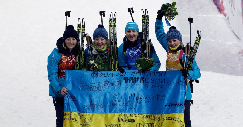 Інша медаль абсолютно точно є однією з найбільш пам’ятних в історії виступів України на зимових Олімпіадах. Віта Семеренко, Юлія Джима, Валентина Семеренко та Олена Підгрушна вибороли для української збірної «золото» жіночої естафети. У напруженій боротьбі за перемогу «синьо-жовті» випередили команду Росії, яку згодом позбавили «срібла» через допінг.
